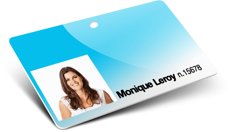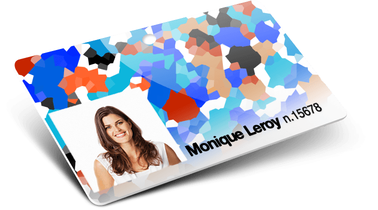 Le nostre card in PVC combinate con i sofisticati software di stampa permettono di realizzare tessere aziendali (badge) con la massima personalizzazione possibile: la tua grafica abbinata a numerazioni, nomi e cognomi e foto dei tuoi dipendenti, il tutto stampato con tecniche di stampa professionali e protetto dal processo di laminazione. Questo significa che i tuoi dati variabili sono indelebili.